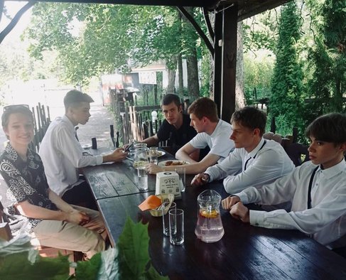 По сложившейся традиции праздничный день продолжился увлекательной экскурсией. После небольшой фотосессии у Троицкого собора выпускники и ребята из юношеского клуба «Спасение» по благословению настоятеля храма в честь Вознесения Господня протоиерея Владимира Пинько отправились на Партизанскую поляну. Экскурсия началась с трапезы в кафе «Брянский лес». Пообедав на славу, ребята разделились на две команды для выполнения познавательного квеста «Партизанский край». В соревновании команд победила, как и положено, дружба! День завершился сладким десертом, каждому досталось по мороженому.