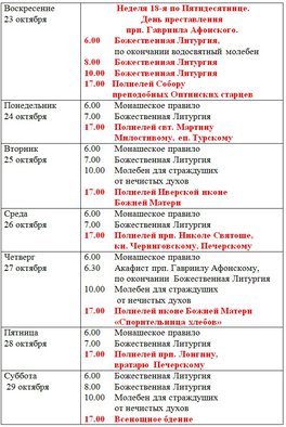 РАСПИСАНИЕ БОГОСЛУЖЕНИЙ