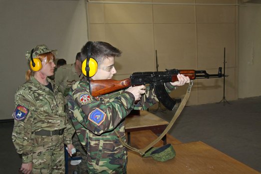 Ростовским духовно-патриотическим центром Святого Георгия Победоносца по благословению и при поддержке Руководителя епархиального отдела по взаимодействию церкви и общества Ростовской на Дону Митрополии настоятеля прихода Святого Георгия Победоносца протоиерея Валерия Волощука на базе приходской воскресной школы храма Иоанна Воина проводятся занятия с детьми, допризывной и призывной молодежью по начальной военной подготовке к службе в Российской армии по программе «Уроки мужества».