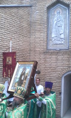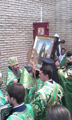 После Литургии состоялся крестный ход к ближней пещере преподобного Антония Печерского. Многочисленные участники торжеств имели возможность приложиться к святыне из Афона - иконе преподобного Антония Печерского и получить благословение Митрополита Вышегородского и Чернобыльского Высокопреосвященного Павла уменьшенными копиями этой иконы.