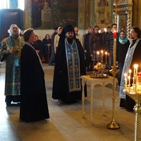 Накануне вечером всенощное бдение, состоявшее из Великого повечерия и утрени с полиелеем, возглавил настоятель храма игумен Никодим (Шушмарченко), которому сослужил клир храм.