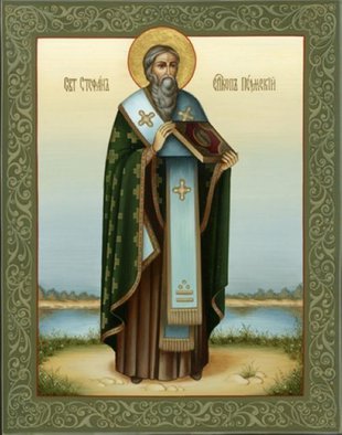 Боже́ственным жела́нием/ от ю́наго во́зраста, Стефа́не прему́дре, разже́гся,/ яре́м Христо́в взял еси́/ и люде́й олядене́вшая дре́вле неве́рием сердца́,/ Боже́ственное се́мя в них се́яв,/ ева́нгельски духо́вне породи́л еси́./ Те́мже пресла́вную твою́ па́мять почита́юще, мо́лим тя:/ моли́, Его́же пропове́дал еси́,// да спасе́т ду́ши на́ша.⚜⚜⚜
