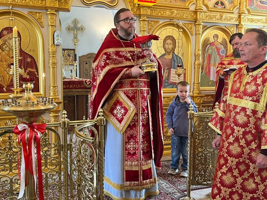27 лет назад, в чеченском плену был казнен русский солдат - Евгений Родионов, принявшего смерть 23 мая 1996 года, в праздник Вознесения Господня, в селении Бамут в Чечне. В этот памятный день, в храме Вознесения Господня в Сатин-Русском была совершена торжественная служба. Божественной литургии совершил настоятель нашего храма священник Максим Соловьев, в сослужении ответственного по связям с Вооруженными силами Викариатства Новых территорий города Москвы священника Алексея Бурцева и клирика храма Казанской иконы Божией Матери в Пучково города Москвы, священника Игоря Мережко.