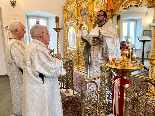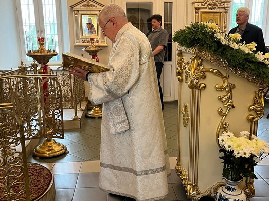 25 мая, в четверг 6-й седмицы по Пятидесятнице, Святая Церковь празднует Вознесение Господа нашего Иисуса Христа. Божественную литургию в этот торжественный для нашего храма день совершил настоятель священник Максим Соловьев.