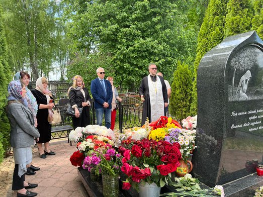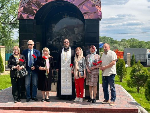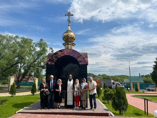 Гостей встретил настоятель храма священник Максим Соловьев, который провёл экскурсию по храму Вознесения Господня и совершил заупокойную литию на месте погребения воина Евгения.