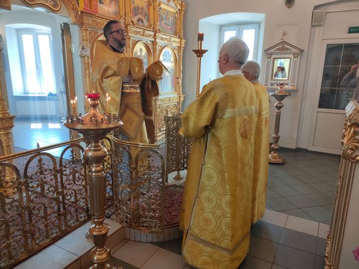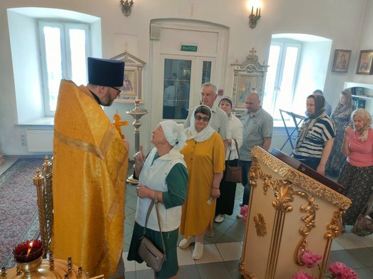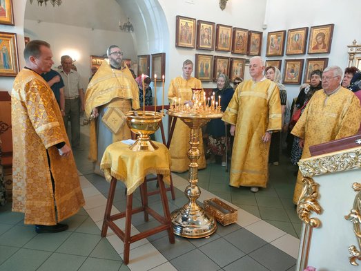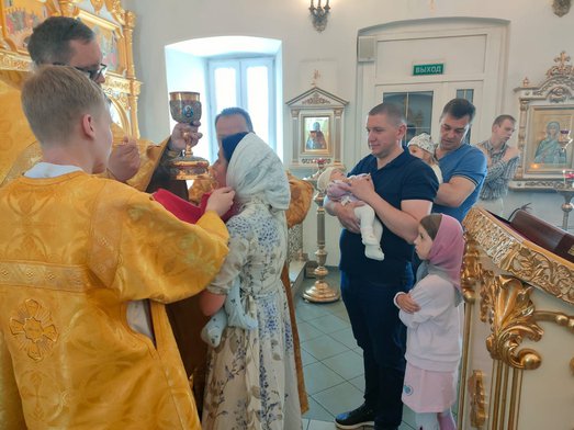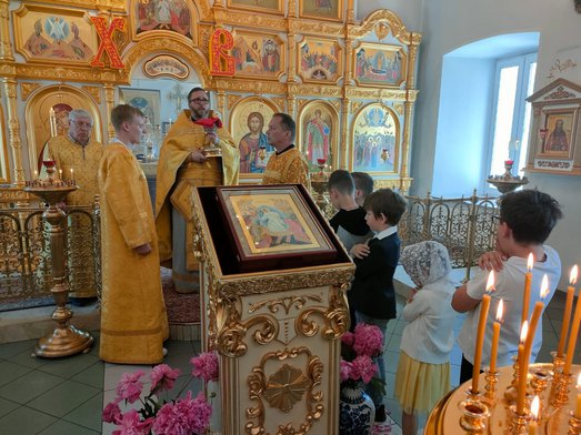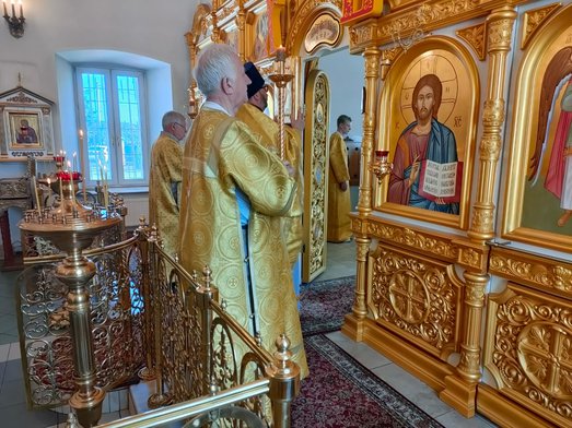 Второе воскресенье по Пятидесятнице – это “Неделя Всех Святых, в земле русской просиявших”. Церковь прославляет сонм праведников и мучеников, как прославленных, так и ведомых одному лишь Богу. Это праздник всей Святой Руси. Божественную литургию в этот день совершил настоятель нашего храма священник Максим Соловьев.