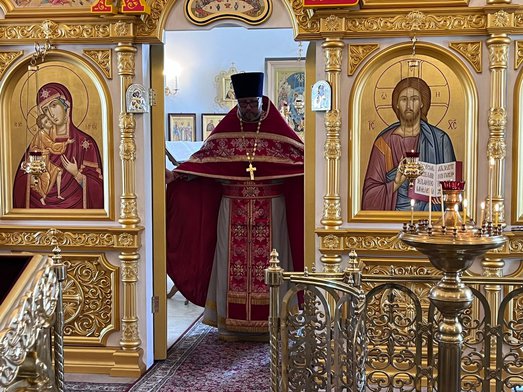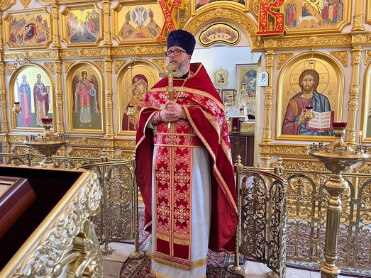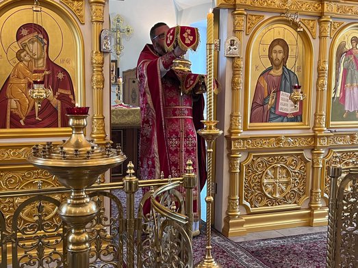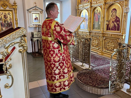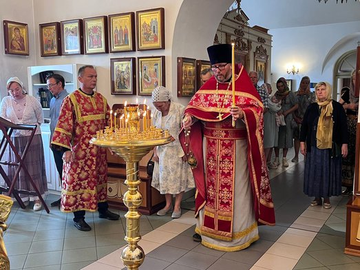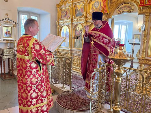 Божественную литургию совершил настоятель нашего храма священник Максим Соловьев. После богослужения было совершено молебное пение перед частицей мощей святого великомученика Пантелеимона.