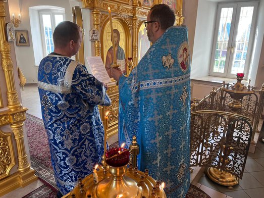 28 августа Русская Православная Церковь отмечает праздник Успения Пресвятой Владычицы нашей Богородицы и Приснодевы Марии. Праздничную божественную литургию в нашем храме совершил священник Максим Соловьев.