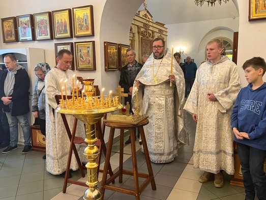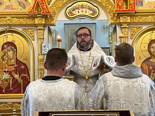 Божественную литургию в этот день совершил настоятель нашего храма священник Максим Соловьев. После Богослужения совершена панихида по всем усопшим сродникам.