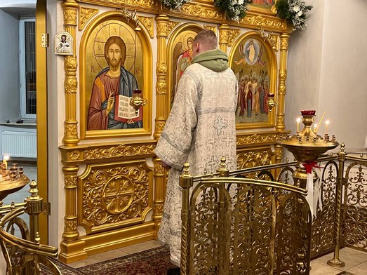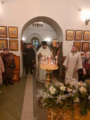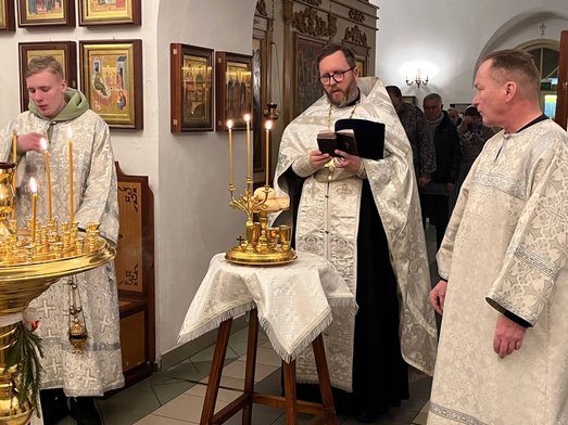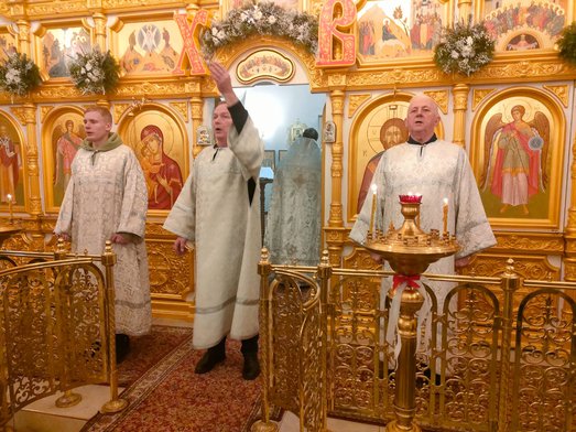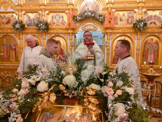 Торжественную праздничную ночную Божественную литургию совершил настоятель нашего храма священник Максим Соловьев.