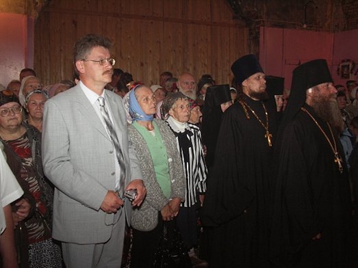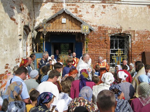 Летом 2003 года была совершена первая Божественная Литургия в летней части кирпичного храм, после закрытия храма.