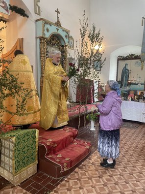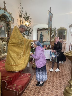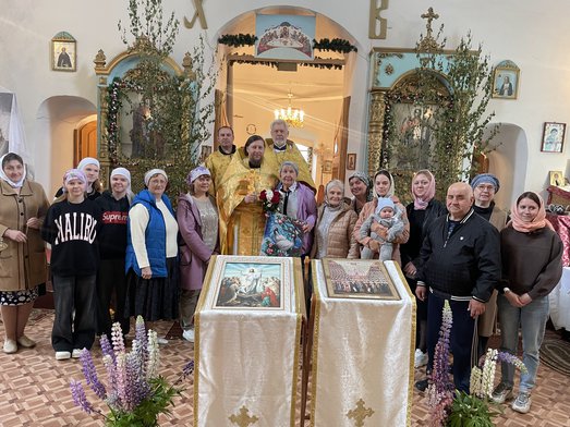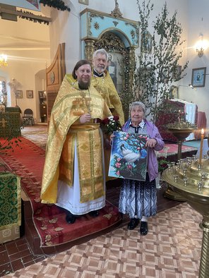 Сегодня 15 июня 2025 г, после божественной литургии о. Александр Гагарин и о. Евгений Тремаскин поздравили р.Б. Татьяну с днём рожденья!