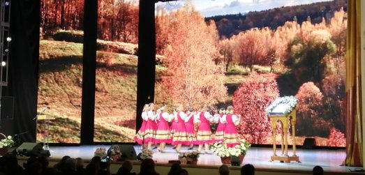 Понравилось все: и мастерство участниц, и народные костюмы, а за артистами, сзади на фоне сцены, перед нашими глазами проплывали виды золотой осени и величавых храмов.