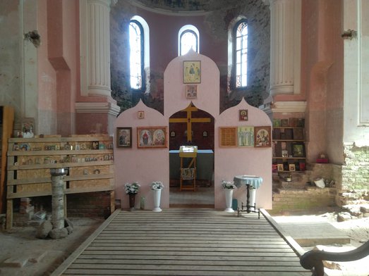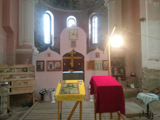 Проведена уборка внутри храма. Подметены полы в алтаре, настилы на проходах. Убрана территория вокруг звонницы от осыпавшихся кирпичей.