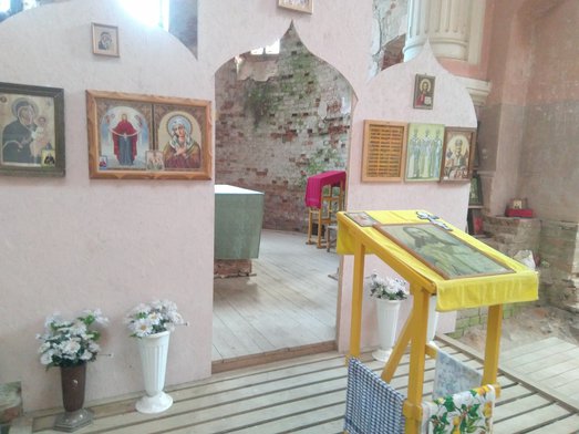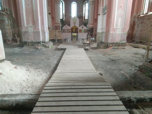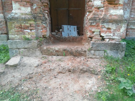 Проведена уборка в храме. Расчищен южный вход в храм Святой Троицы. Убраны упавшие кирпичи с северной стороны храма.