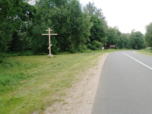 Выкошена трава на всей площади, убраны упавшие под действием ветра вокруг храма деревья, проведён ремонт красочного слоя Придорожного поклонного креста, изготовлен новый каркас информационного плаката у дороги, проведена уборка в храме.