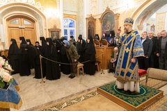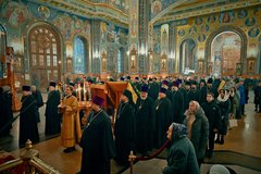 Митрополит Воронежский и Лискинский Леонтий возглавил служение всенощного бдения с акафистом у мощей святителя Митрофана, первого епископа Воронежского.
