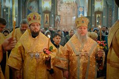 Правящий Архиерей митрополии совершил Божественную литургию и праздничный молебен с крестным ходом, а затем обратился к духовенству, монашествующим и мирянам с проповедью.