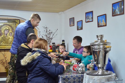 После посадки дубовых саженцев участники пообедали в монастырской трапезной и пообщались с наместником монастыря игуменом Алексием. Желающим была проведена экскурсия по монастырю и пещерному храму, а в завершении состоялось питие чая из русского самовара с пряниками.