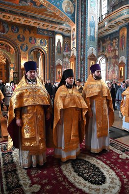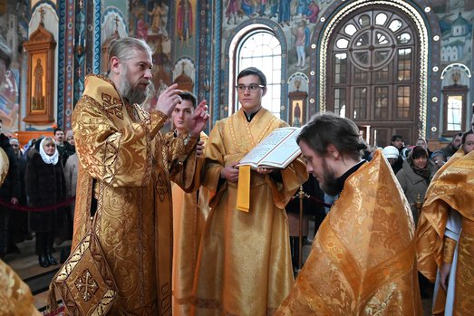 На малом входе, по благословению Святейшего Патриарха Московского и всея Руси Кирилла, во исполнение определения Священного Синода Русской Православной Церкви (журнал № 123 от 26.12.2025 г.) об избрании клирика Воронежской епархии иеромонаха Серафима (Тищенко) епископом Златоустовским и Саткинским, митрополит Воронежский и Лискинский Леонтий возвел иеромонаха Серафима в сан архимандрита.