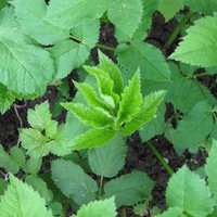 Сныть обыкновенная-А. podagraria L. (таб. 58) Многолетник с длинным горизонтальным корневищем. Нижние листья с длинными (20-40 см) черешками, дважды тройчатые, с nродолговато-яйцевидными остропильчатыми сегментами, сверху голые, снизу опушенные, 10-20 см дл. и несколько больше в ширину. Верхние листья более мелкие, тройчатые, с короткими, расширенными во влагалище черешками. Верхушечный зонтик 7-9 см в диам., с 20-25 лучами, обертки и оберточки отсутствуют. Зубцы чашечки незаметные, лепестки белые. Плоды nродолговатые, слегка сжатые с боков, около 3 мм дл., темно-коричневые, с 5 тонкими ребрами на каждом мерикарпии. Цветет в июне - июле. Почти по всей европейской части (редко в Крыму), на Кавказе, в Сибири, горных районах Казахстана и Средней Азин. В лecax (особенно широколиственных), по вырубкам, садам, у жилья. Предпочитает влажные местообитания. Светолюбива. Продуктивность одного экземпляра в среднем около 12 г сырых листьев.