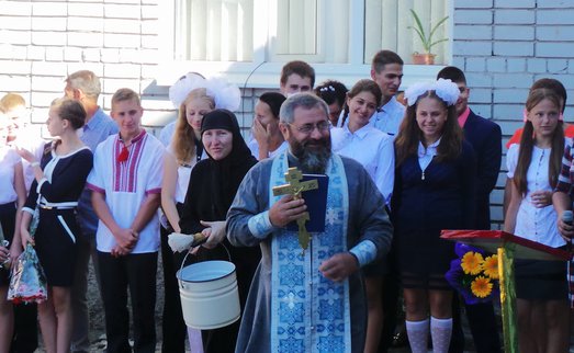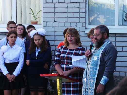 Первое сентября в нашей школе - праздник и для учителей, и для учеников. Наш батюшка, протоиерей Всеволод, поздравил всех учащих и учащихся, сказал напутственное слово, помолился о благопоспешении в учёбе, окропил всех святой водой и подарил от имени матушки игумении всем ученикам и учителям иконы Божией Матери "Прибавление ума".