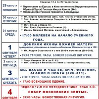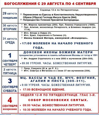 БОГОСЛУЖЕНИЯ с 29 августа по 4 сентября
