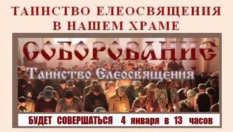 Соборование _Таинство Елеосвящения в нашем храме будет совершаться 4 января в 13 часов вместо 16 часов.