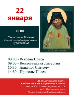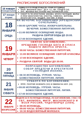 РАСПИСАНИЕ БОГОСЛУЖЕНИЙ С 16 по 22 января
