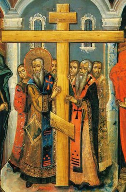 В 326 году император Константин Великий очень хотел найти Крест, на котором три века назад был распят Спаситель. Он направил в Иерусалим экспедицию во главе со своей матерью, царицей Еленой. Поиски оказались успешными: в земле под Голгофой обнаружили три креста. Чтобы узнать, на каком из них страдал Спаситель, к каждому по очереди поднесли недавно умершего человека. И Господь явил чудо: возложенный на один из крестов покойник воскрес! Узнав об этом, к Голгофе прибыло множество людей, и иерусалимский архиепископ Макарий несколько раз поднял (воздвиг) Честное Древо Креста ввысь, чтобы все могли увидеть святыню.
