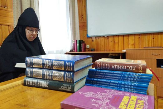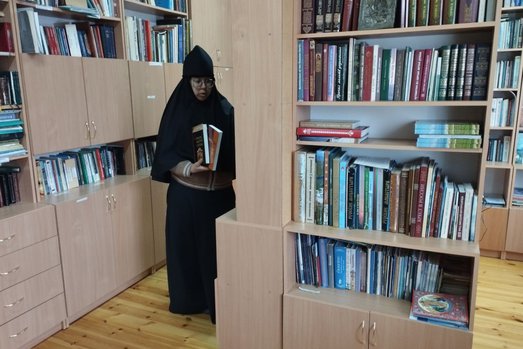Библиотечный фонд в процессе подготовки. Часть необходимой литературы уже есть в наличии в монастырской библиотеке, часть ещё нужно приобрести.