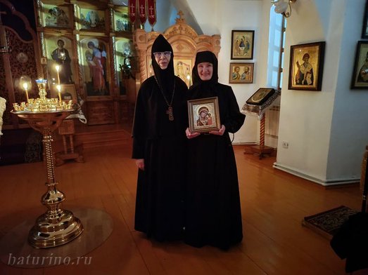 Матушка благословила послушницу Галину и подарила ей Казанскую икону Божией Матери. Все сестры и помощники обители поздравили сестру с новым шагом на пути ко Христу.