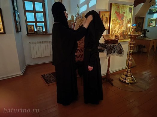 Вечером, 21 марта, накануне дня памяти сорока мучеников Севастийских, Матушка Ника одела в послушнические Богородичные одежды сестру Галину (Ложникову Жанну Вячеславовну).