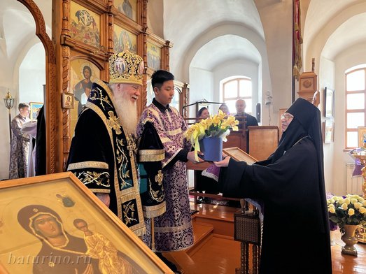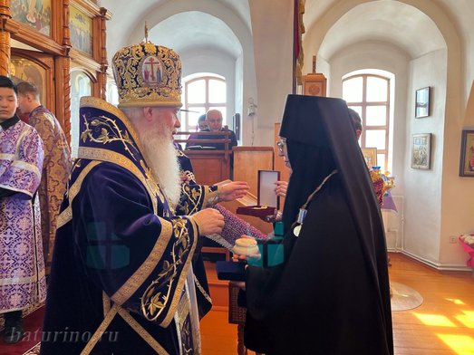 Владыка Иосиф наградил настоятельницу монастыря медалью Улан-Удэнской и Бурятской епархии священномученика Ефрема епископа Селенгинского I степени, а также вручил крест с украшениями и святую просфору. Матушка Ника поблагодарила Владыку за совместную молитву, за любовь, за благой пример, за поздравление и преподнесла от лица сестер обители букет цветов. «Огромная радость иметь такого благого любящего отца-наставника, которым являетесь Вы, владыка! Вы для нас и пример, и добрый пастырь, который ведет нас за собой, заботится, любит, во всем наставляет! Спаси, Господь!»
