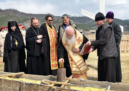 Митрополит Иосиф освятил закладку храма в честь святителя Николая Чудотворца в селе Ангыр