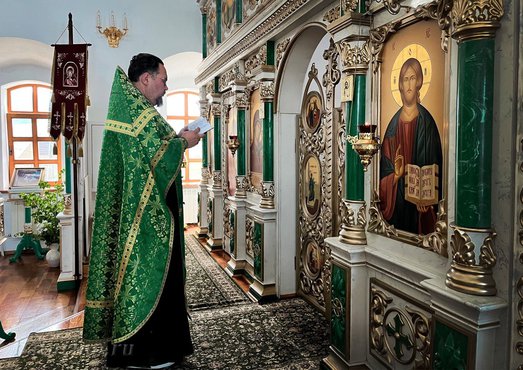Отец Михаил поздравил матушку Нику, сестер и гостей с праздником. «Вспоминаем, сопереживаем, участвуем в событии, которое изменило мир и продолжает менять его. Сегодня — день рождения Церкви Христовой. В 50-й день после Своего Воскресения (Лк. 24:49) Господь посылает Святого Духа Своим ученикам-апостолам (Деян. 2:1–4), и Дух Святой преображает их. Кем были апостолы до этого момента? Они были простыми обычными людьми. Многие из них — неучеными, незнатными, не имеющими особых знаний. Мы помним, как Господь призвал их к апостольскому служению прямо от рыболовных сетей: «Идите за Мной» (Мф. 4:19) — и они пошли. После Воскресения Христос неоднократно являлся ученикам, укрепляя их, потому что они были объяты страхом. Как пишет Писание, они разбежались (Мк. 14:50) после казни Спасителя, потрясенные Его смертью. Они не могли ни проповедовать, ни исцелять, как делали это прежде, и даже вернулись к прежнему занятию — рыболовству. В Евангелии от Иоанна описано, как Господь явился им именно во время ловли рыбы (Ин. 21:1-14). Казалось, все вернулось на круги своя, и никакой надежды на перемены не было.