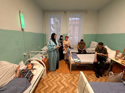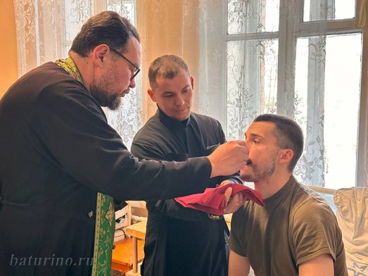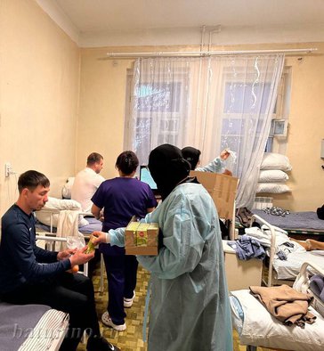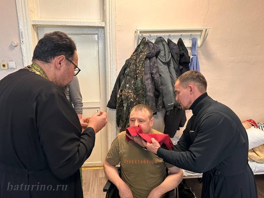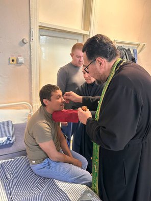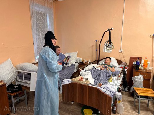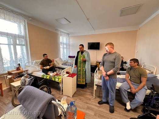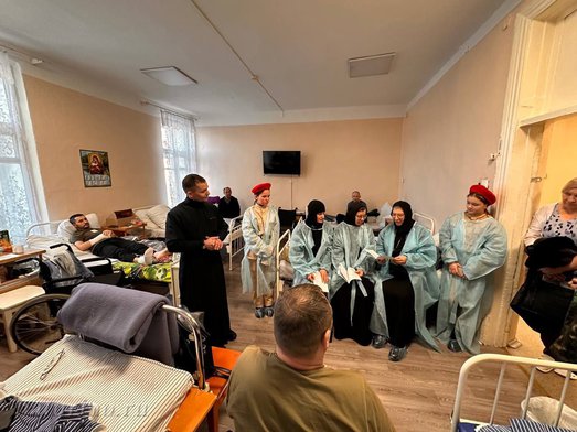 Отец Михаил поисповедовал всех желающих православных христиан и причастил Святых Христовых Тайн. Сестры пели духовные песнопения, читали стихи, матушка от имени всех сестер благодарила раненых бойцов за их любовь к своей Родине и своему народу, были розданы сладкие подарки, выпечка, соки, святые иконки, крестики.