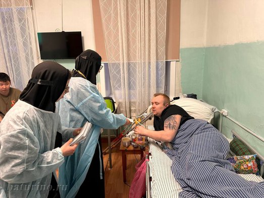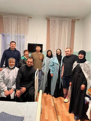 С Божией помощью, матушка Ника с сестрами монастыря, протоиереем Михаилом, воспитанниками молодёжной организации "Витязи", алтарником Виктором Емельяновым и волонтером Андреем Кожевиным посетили один из госпиталей республики Бурятии. Целью посещения было желание духовно поддержать раненых защитников нашего Отечества и поделиться с ними рождественской радостью.