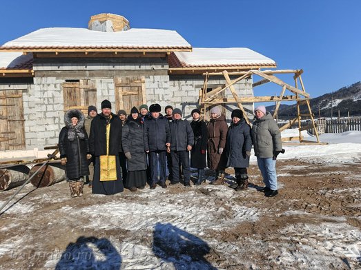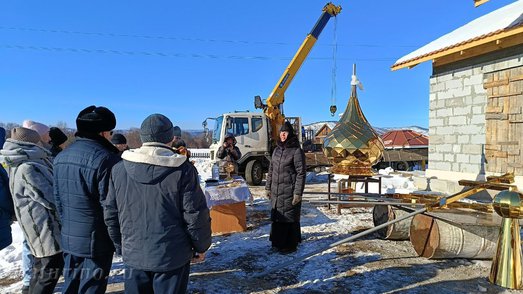 Освящение крестов и куполов у храма святителя Николая Чудотворца в селе Ангыр