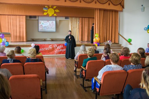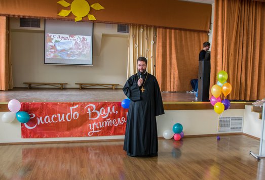 Священнослужитель поздравил учителей с праздником, пожелали им сил, крепкого здоровья и духа мирна.