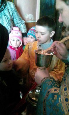 В нашем храме утром 7 апреля 2016 года прошла Божественная литургия, после неё много прихожан приняли Святое Причастие. Вместе со всеми причастились и малыши – воспитанники Детского Дома.