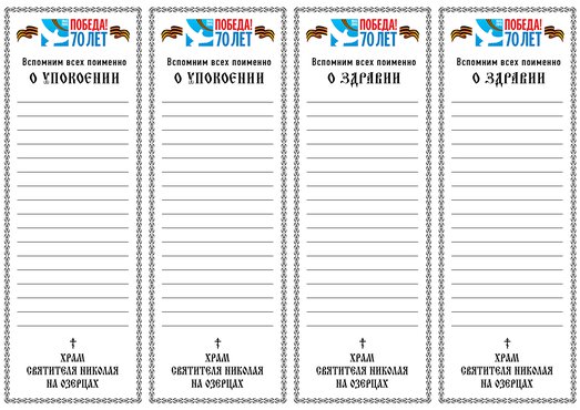 Накануне Дня победы на приходе Никольского храма села Озерецкое для прихожан были изготовлены юбилейные Записки о здравии и о упокоении.