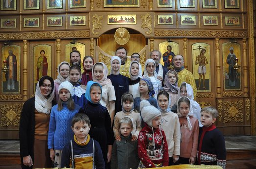 Во время богослужения в качестве певчих участвовали учащиеся церковного пения при воскресной школе Казанского храма г. Раменское под руководством преподавателя Айрапетовой М.Л. в количестве 21 человек возрастом от 7 до 13 лет. Ранее дети уже принимали участие в богослужениях, а в этот раз они пели литургию целиком. По окончании службы отец Андрей поблагодарил учащихся за участие. В трапезной храма для них было организовано чаепитие.