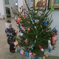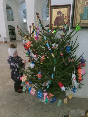 В изостудии (преподаватель Воякина Н.Д.) ученики своими самодельными игрушками, изготовленными во время занятий «Мастерской Деда Мороза», украсили ёлочку, установленную в Казанском храме возле иконы Божией Матери «Воспитание».