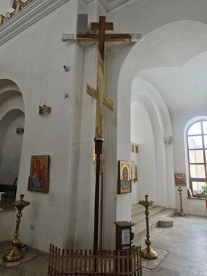 Крест, изготовленный «Строительно-реставрационной компанией «ЭРА», имеет высоту 6 метров вместе с основанием. Благодарим всех жертвователей и благоукрасителей за оплату работ по изготовлению креста, маковки и барабана. Крест будет находиться в Казанском храме до его установки на Дементьевском кладбище.