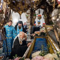 Где те гонители, где те хулители, где те, кто закрывал храмы и монастыри в Москве? Хоть кто-нибудь их вспоминает? А вот к матушке Матроне, инвалиду, слепой женщине, исполненной глубокой веры и благочестия, не зарастает народная тропа, и это есть величайшее свидетельство присутствия Самого Бога в нашей жизни, в истории нашего Отечества и, конечно, свидетельство о Покрове Пречистой Царицы Небесной над нашей Церковью и над нашим народом. И совсем не случайно, что именно в честь Покрова освящен этот храм, где прославляется также имя матушки Матроны — молитвенницы за землю Русскую и за град Москву.