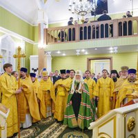 Откровенно скажу, что с большим волнением совершал сегодня Божественную службу в этом храме, где десять лет был настоятелем мой отец, в самые тяжелые годы так называемых хрущевских гонений. Храмы закрывались. Безумный правитель сказал, что к 1980 году в нашей стране будет построен коммунизм, и он покажет — не очень хорошие слова, но приведу точную цитату — «последнего попа по телевизору».