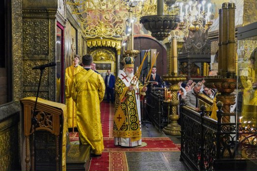Святитель Петр Духом Святым прозрел будущее и града Москвы, и всего Отечества нашего. Конечно, перенос церковной столицы означал, что Москва перестает быть заурядным городом и становится столицей Святой Руси. Я уже об этом говорил, но, по всей вероятности, еще не пришло время, чтобы важность сего дня осознали и местные власти, и общественность, и представители культуры. Потому что именно этот день должен быть Днем города Москвы. Москва стала столицей именно потому, что святитель Петр сюда, на Боровицкий холм, перенес свою кафедру, а затем был построен этот величественный кафедральный собор и Москва на долгие столетия — верим, что навсегда, — стала столицей Русского государства.
