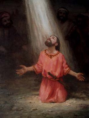 Но Господь усмотрел в молодом фарисее - яростном гонителе христиан «сосуд избранный Себе», и чудесным образом призвал его к апостольскому служению. Случилось это на пути в Дамаск, куда Савл направлялся, чтобы преследовать христиан даже за пределами Палестины. По дороге ярчайший свет так ослепил его, что заставил упасть на землю. Из света раздался голос: «Савл, Савл, почему ты гонишь Меня?» «Кто Ты?» - спросил Савл. «Я Иисус, Которого ты гонишь» - ответил ему Господь. И воскликнул Савл в трепете и ужасе: "Господи! что повелишь мне делать?" Господь повелел Савлу идти в Дамаск, где ему будет указано, что делать дальше. Ослепшего Савла вели под руки. В Дамаске Савл был крещен с именем Павел. В момент погружения в воду зрение вернулось к нему. С этого времени Павел сделался ревностным проповедником прежде гонимого им учения.