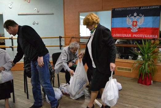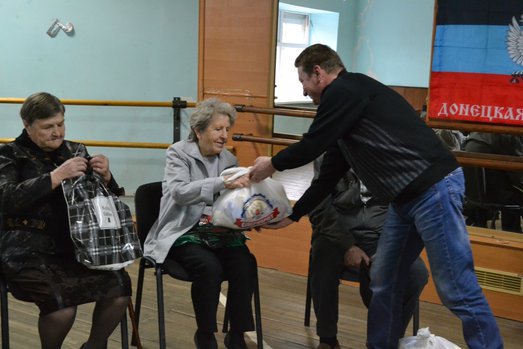 После проведения урока для присутствующих узников фашистских концлагерей были приготовлены гуманитарные продовольственные наборы от депутата НС ДНР, Благотворительного фонда «Феникс-Донбасс» и Общественного Движения «Донецкая Республика».